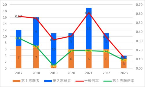 三谷水産(情報通信)の2024年の倍率はここをタップ 【2023】三谷水産高校(情報通信)の一般入試倍率 一般定員 志願者数 第1志願者 第2志願者 一般倍率 第1志願倍率 2017 22 62 31 31 2.82 1.41 2018 20 52 20 32 2.60 1.00 2019 20 59 39 20 2.95 1.95 2020…