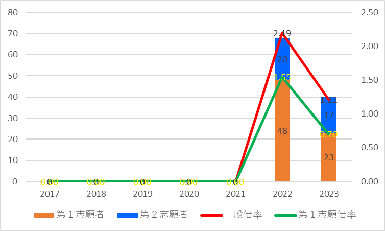| 一般定員 | 志願者数 | 第1志願者 | 第2志願者 | 一般倍率 | 第1志願倍率 | |