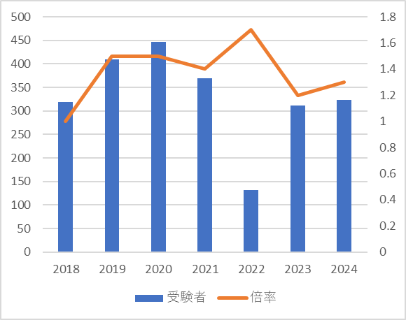 | 受験者 | 319 | 410 | 447 | 369 | 132 | 312 | 324 |