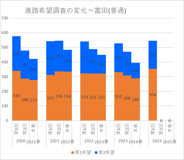 【2024(2025春入試)】富田(普通)~第1回進路希望調査【2020~2024】