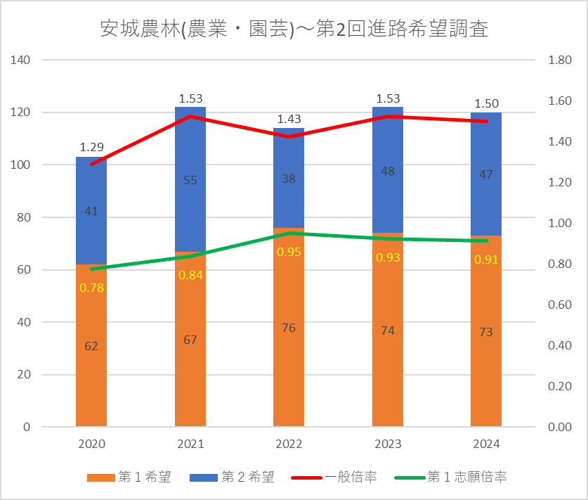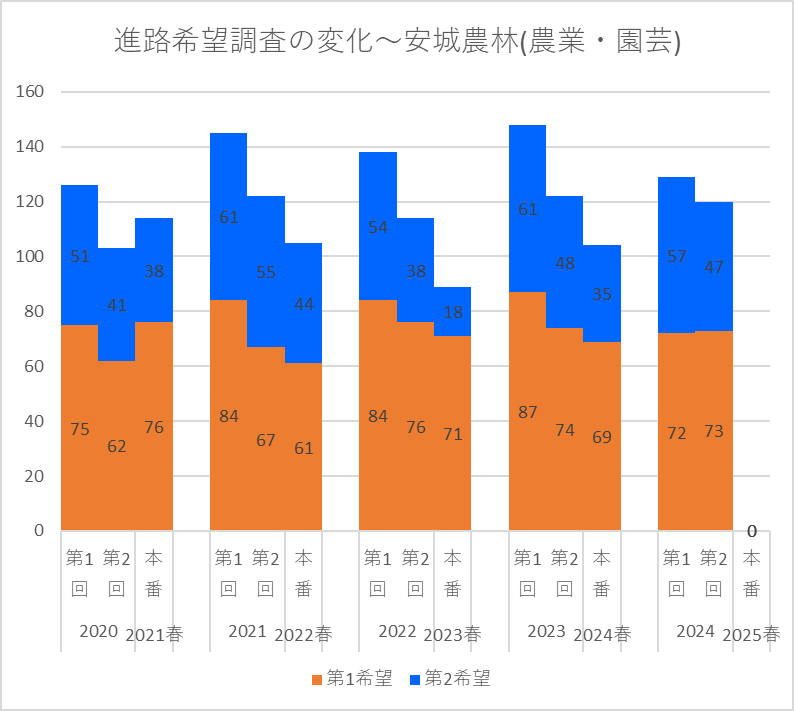 【2024(2025春入試)】安城農林(農業・園芸)~第2回進路希望調査【2020~2024を比較】