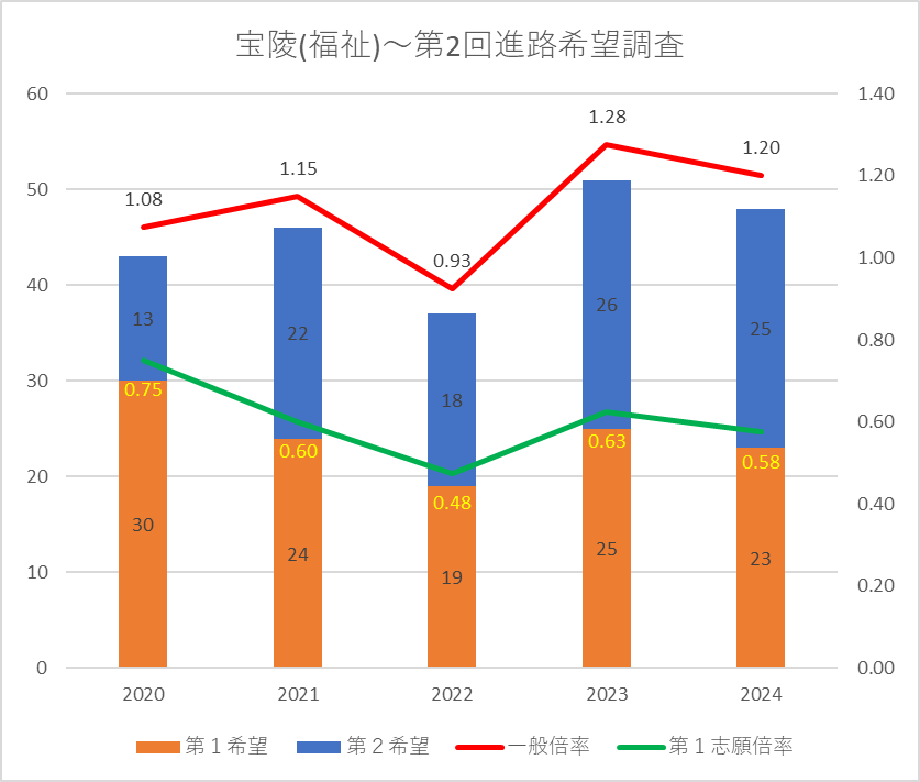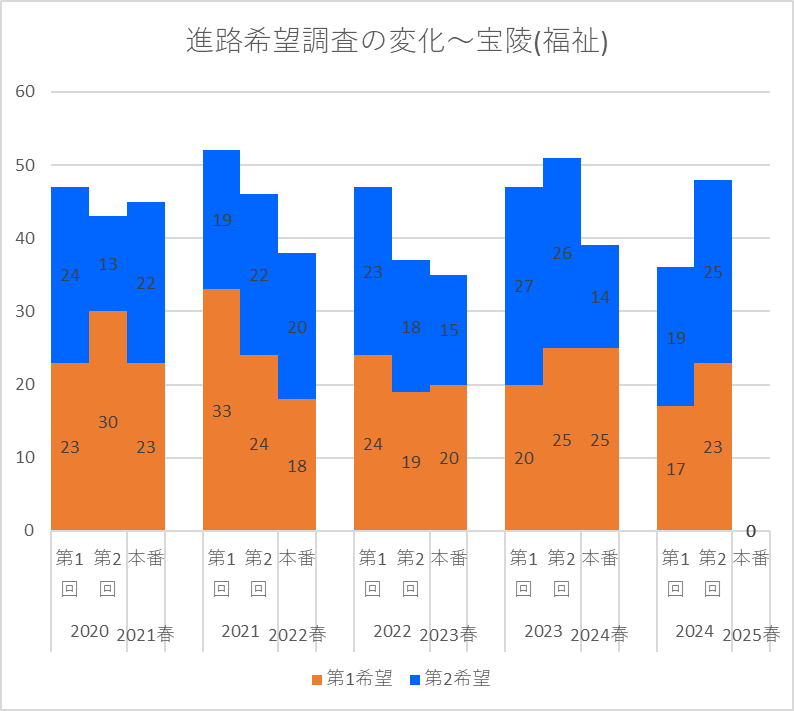 【2024(2025春入試)】宝陵(福祉)~第2回進路希望調査【2020~2024を比較】