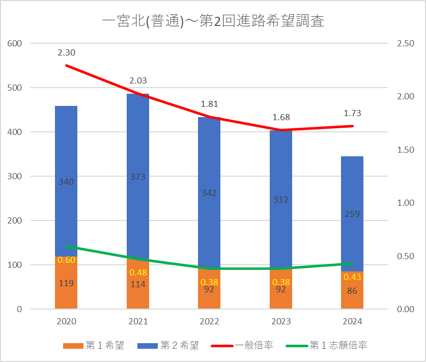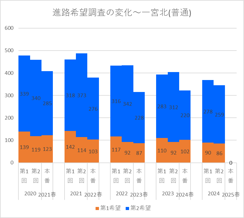 【2024(2025春入試)】一宮北(普通)~第2回進路希望調査【2020~2024を比較】