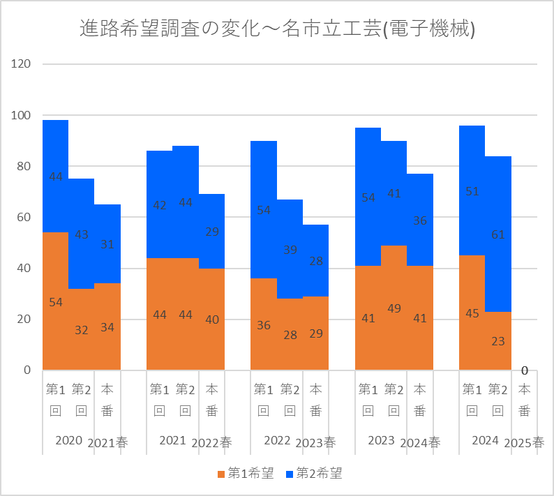【2024(2025春入試)】名市立工芸(電子機械)~第2回進路希望調査【2020~2024を比較】