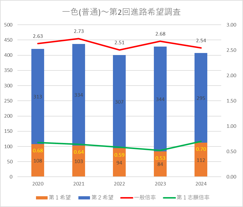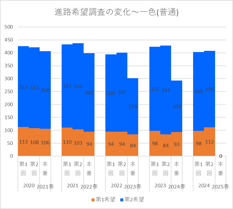 【2024(2025春入試)】一色(普通)~第2回進路希望調査【2020~2024を比較】