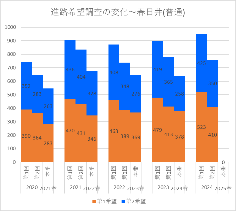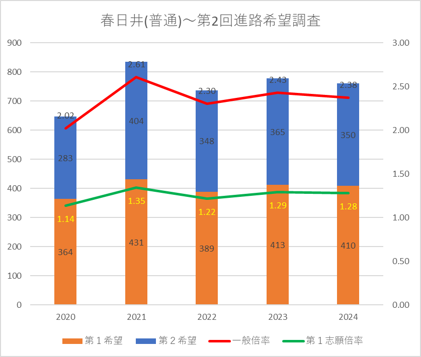 【2024(2025春入試)】春日井(普通)~第2回進路希望調査【2020~2024を比較】