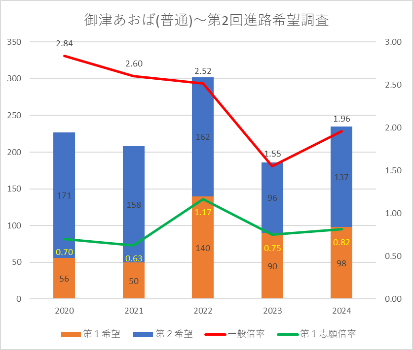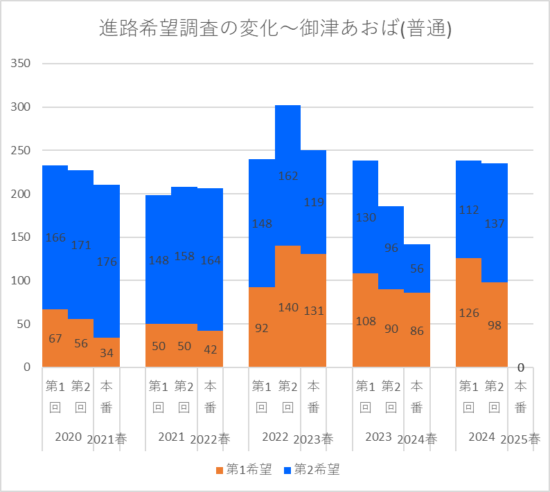 【2024(2025春入試)】御津あおば(普通)~第2回進路希望調査【2020~2024を比較】