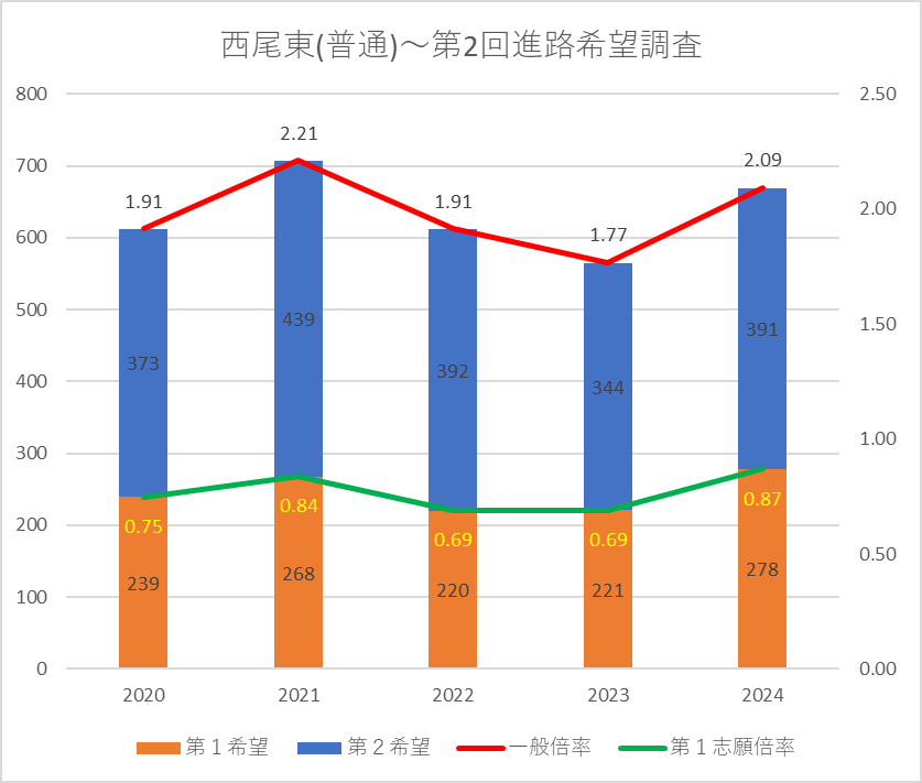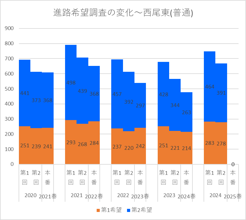 【2024(2025春入試)】西尾東(普通)~第2回進路希望調査【2020~2024を比較】