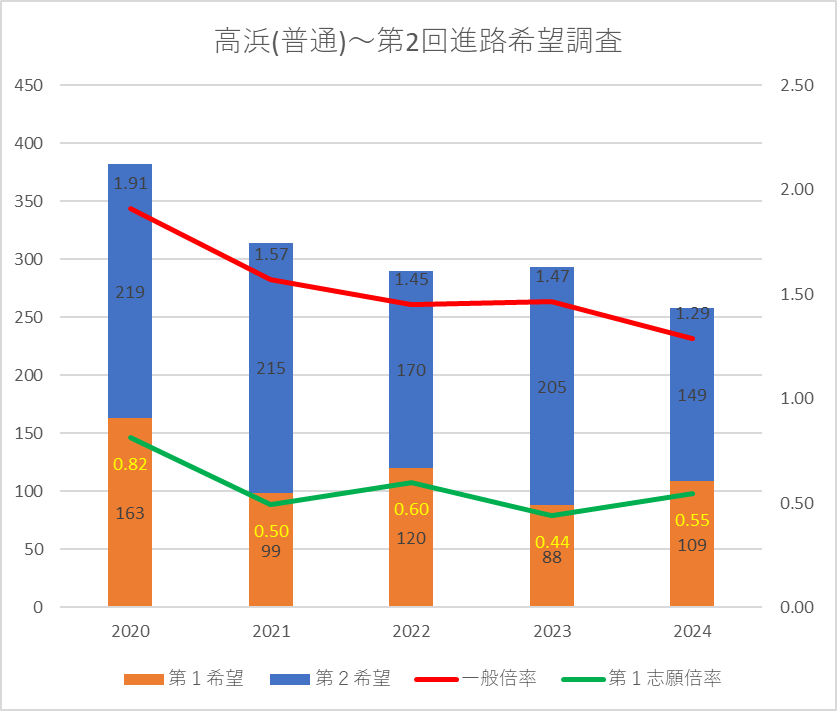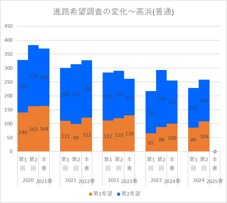 【2024(2025春入試)】高浜(普通)~第2回進路希望調査【2020~2024を比較】