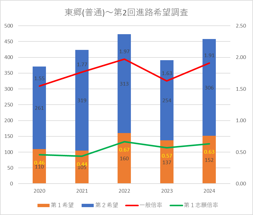 【2024(2025春入試)】東郷(普通)~第2回進路希望調査【2020~2024を比較】