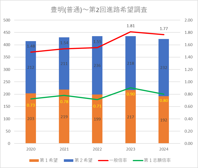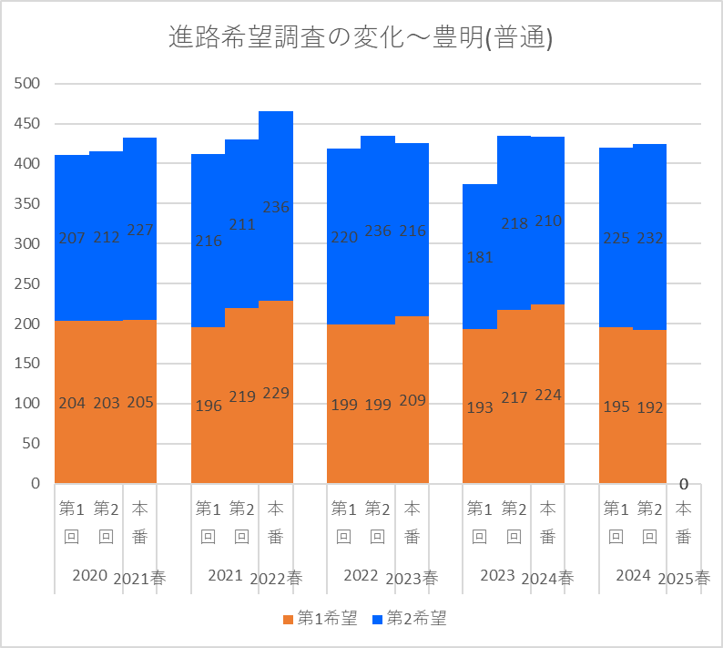 【2024(2025春入試)】豊明(普通)~第2回進路希望調査【2020~2024を比較】