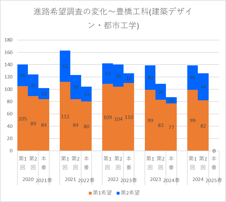 【2024(2025春入試)】豊橋工科(建築デザイン・都市工学)~第2回進路希望調査【2020~2024を比較】