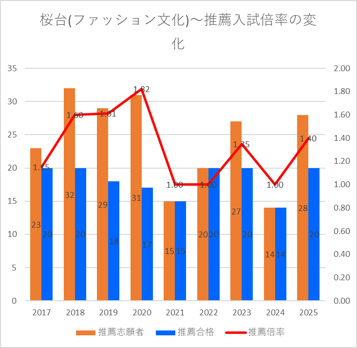 【2025春】桜台(ファッション文化)~推薦入試の倍率【2017~2025】